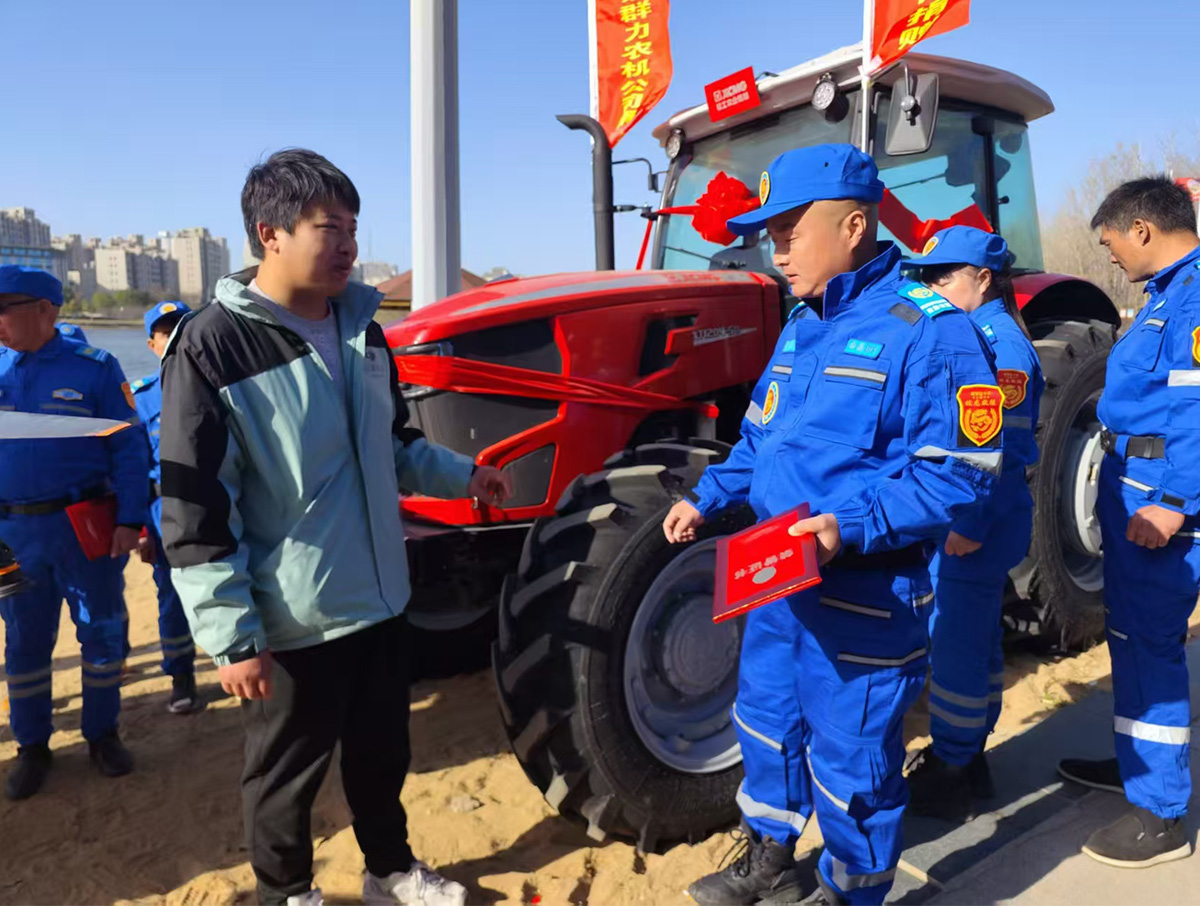 蛟龙救援队队长张团结对群力农机公司的慷慨捐赠表达了诚挚谢意。他介绍,蛟龙救援队作为县域重要的民间应急救援力量,成立以来已参与各类救援任务上千次,在抗洪抢险、野地搜救、应急保障等工作中发挥了关键作用,但专业装备的短缺一直是制约救援效率的瓶颈。“这两台装备堪称救援一线的‘得力战友’,拖拉机让我们在复杂路况中更具机动性,无人机让搜救范围和效率实现质的提升,将为我们争取更多黄金救援时间。”他表示,全体队员将管好、用好这批装备,把企业的爱心转化为救援实战中的战斗力,不辜负社会各界的信任与期盼。